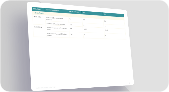 SASB CODE ACCOUNTING METRIC MATERIAL TOPICS 2022 2023 Activity Metric FB-RN-000.A Number of (1) company-owned NA 214 214 restaurants Number of (2) franchise restaurants NA 0 0 FB-RN-000.B Number of employees at (1) company- NA 4,500 5,693 owned Number of employees at (2) franchise NA 0 0 locations SUSTAINABLE DINING REPORT 2023 50