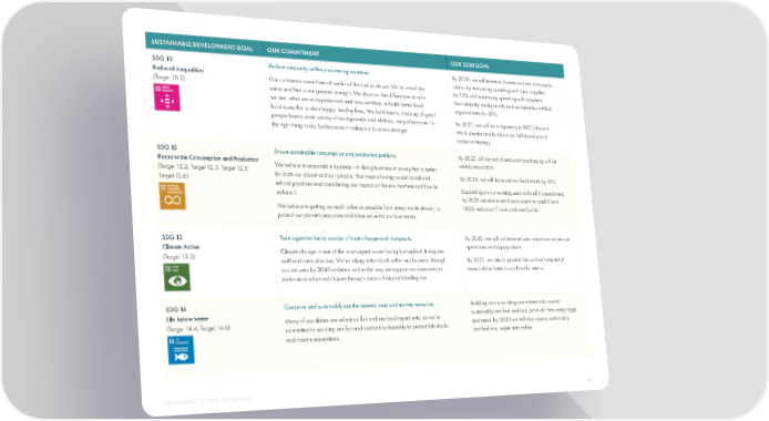 SUSTAINABLE DEVELOPMENT GOAL OUR COMMITMENT OUR 2030 GOAL SDG 10 Reduce inequality within and among countries. By 2030, we will invest in diverse and resilient supply Reduced inequalities Our customers come from all walks of life and so do we. We’re not all the chains by increasing spending with local suppliers (Target 10.2) same and that is our greatest strength. We draw on the differences in who by 10% and increasing spending with suppliers we are, what we’ve experienced and how we think, to build better food from minority backgrounds and sustainably certi昀椀ed businesses that sustain happy, healthy lives. We build teams made up of great organisations by 20%. people from a wide variety of backgrounds and abilities, not just because it’s By 2025, we will be a signatory to BITC’s Race at the right thing to do, but because it makes our business stronger. Work charter and build out our full diversity and inclusion strategy. SDG 12 Ensure sustainable consumption and production patterns. By 2025, all our out of restaurant packaging will be Responsible Consumption and Production We believe in responsible business - in doing business in a way that is better widely recyclable. (Target 12.2; Target 12.3; Target 12.5; for both our planet and our people. That means having sound social and By 2030, we will have cut our food waste by 15%. Target 12.6) ethical practices and considering our impact on the environment and how to reduce it. Expanding on our existing zero-to-land昀椀ll commitment, by 2025 we aim to send zero waste to land昀椀ll from We believe in getting as much value as possible from every waste stream, to 100% restaurant 昀椀t outs and new builds. protect our planet’s resources and drive value for our businesses. SDG 13 Take urgent action to combat climate change and its impacts. By 2040, we will achieve net zero emissions across our Climate Action Climate change is one of the most urgent issues facing humankind. It requires operations and supply chain (Target 13.3) swift and radical action. We’re taking action both within our business through By 2025, we aim to provide the carbon footprint of our net zero by 2040 ambition and in the way we support our customers to items sold or listed in our brands’ menus. make more informed choices through carbon footprint labelling too. SDG 14 Conserve and sustainably use the oceans, seas and marine resources. Building on our existing commitments to source Life below water Many of our dishes are reliant on 昀椀sh and seafood ingredients, so we’re sustainably certi昀椀ed seafood, palm oil, free-range eggs (Target 14.4; Target 14.6) committed to sourcing our 昀椀sh and seafood sustainably to protect 昀椀sh stocks and meat, by 2030 we will also source sustainably and marine ecosystems. certi昀椀ed rice, sugar and coffee. SUSTAINABLE DINING REPORT 2023 45
